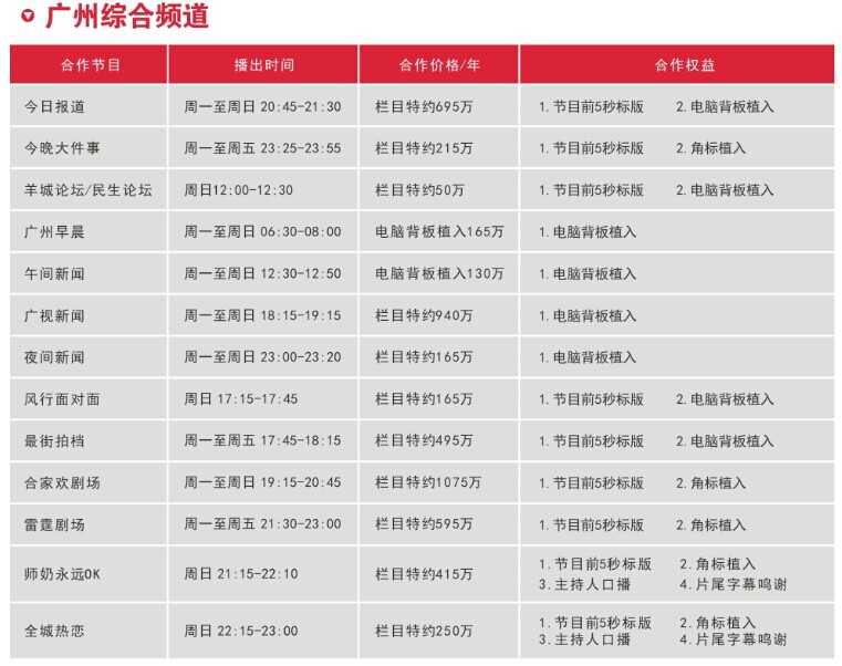 广州广播电视台软性广告资源