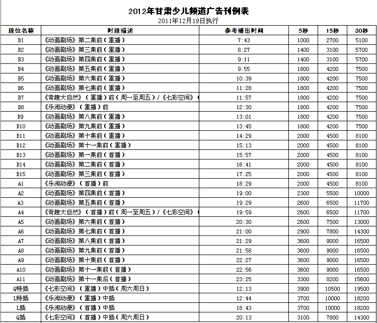 当前位置:主页 > 电视广告 > 甘肃 > 甘肃少儿频道广告部 >