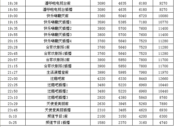 广西公共频道广告价格表