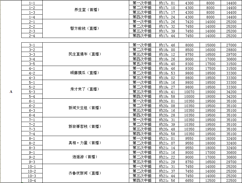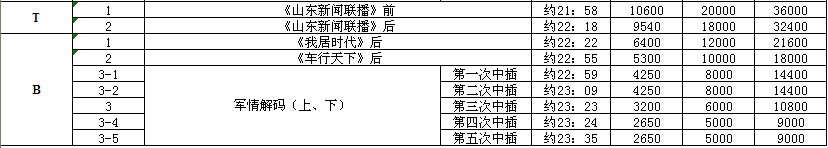 2012年山东公共频道广告价格表