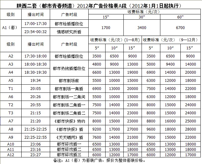 当前位置:主页 > 电视广告 > 陕西 > 陕西都市青春频道广告部 >