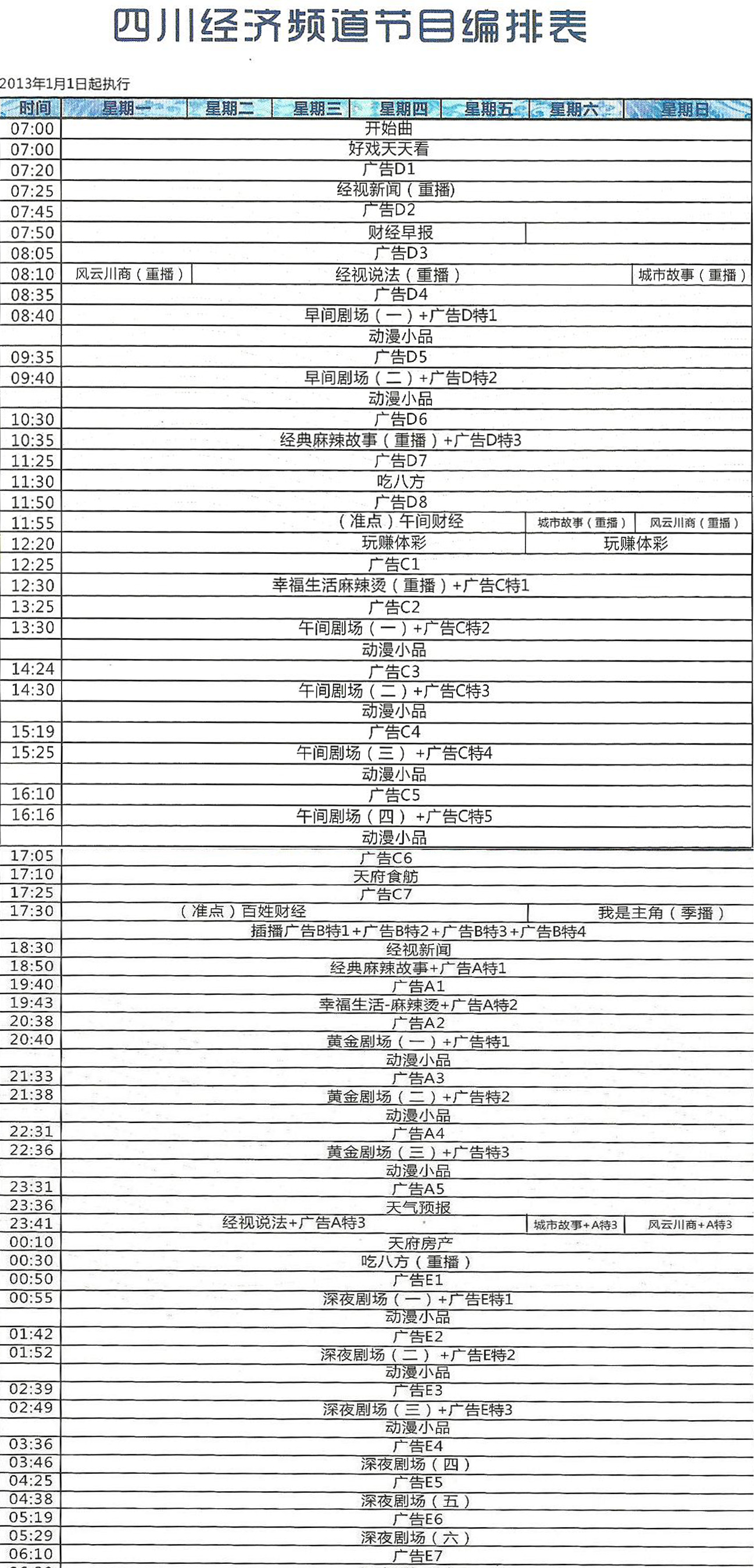 2013年四川经济频道节目编排表